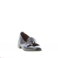 GREEN GEORGE uomo mocassino accollato in pelle NERO con frangia e nappine. Suola in cuoio