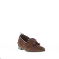 GREEN GEORGE uomo mocassino accollato in camoscio MARRONE con nappine. Suola in cuoio