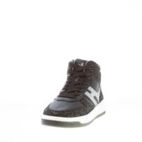 HOGAN donna H630 Basket sneaker alta in pelle NERO e argento con glitter
