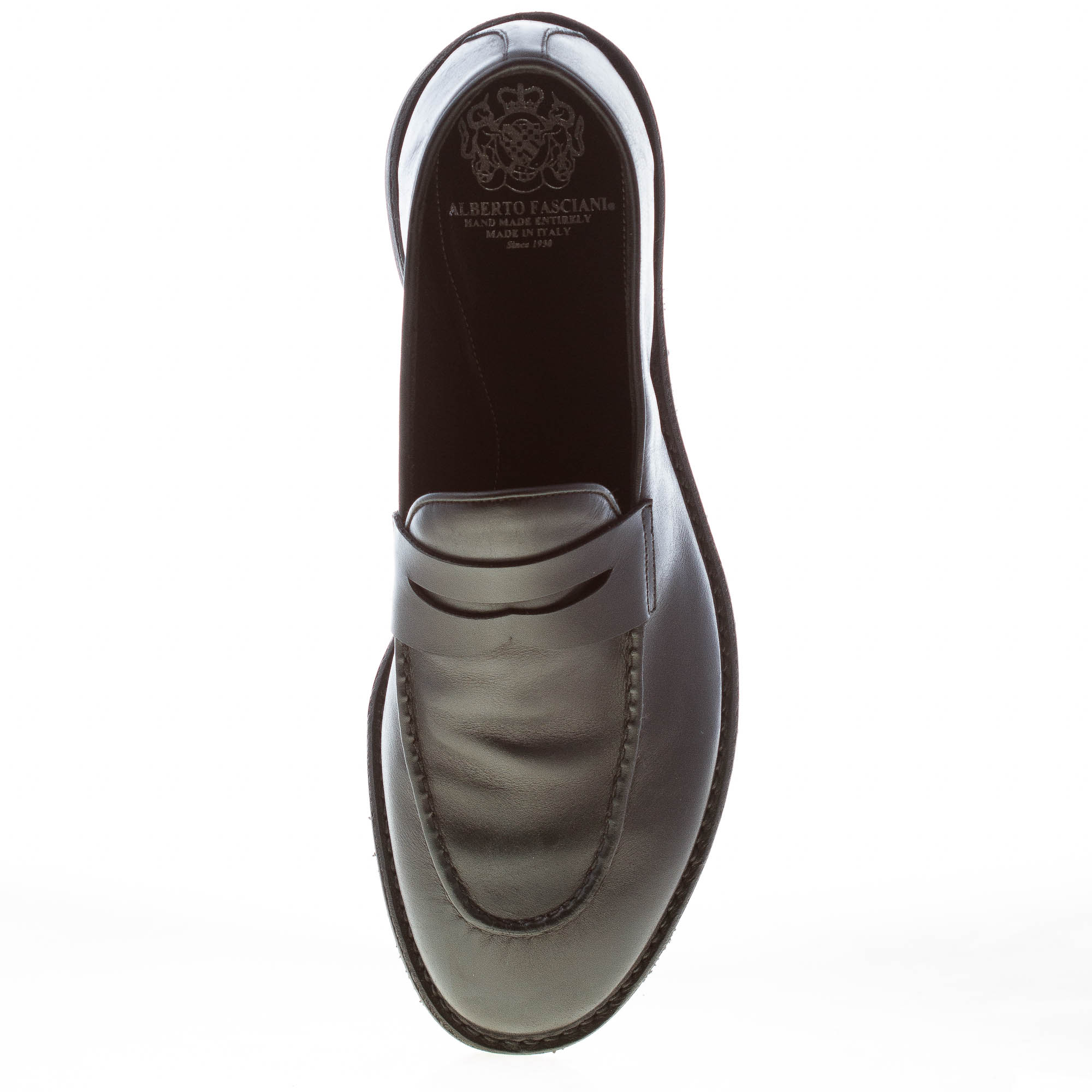 Black fine soft napa leather Jason 94001 loafer, entirely handmade in Italy, with the classic front penny bar and the Adler stitching at toe.