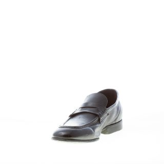 Mocassino classico artigianale in morbida pelle nera con la classica fascetta “penny”. Cucitura a vaschetta in rilievo sulla punta. Fatto a mano in Italia. Suola in cuoio