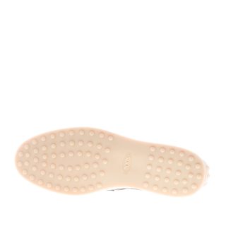 Mocassino realizzato in pelle scamosciata blu galassia con la classica mascherina penny e cucitura a vaschetta. Monogramma Tod’s impresso. Dettaglio con inserto in rafia a contrasto lungo i lati. Rinforzo in gomma con logo e gommini in rilievo sul tallone. Suola in gomma con gli iconici gommini in rilievo