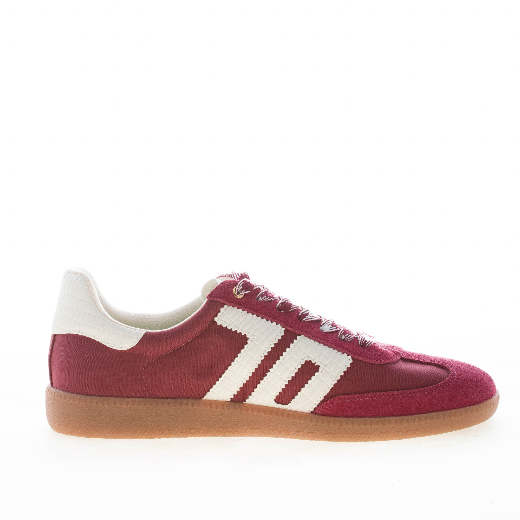 Ghost 10 sneaker made in wine tone nylon fabric and suede with white croco printed leather logo 70 at side and back detail. Two-tones laces and removable 1,5 cm footbed. Ultraflexible rubber sole