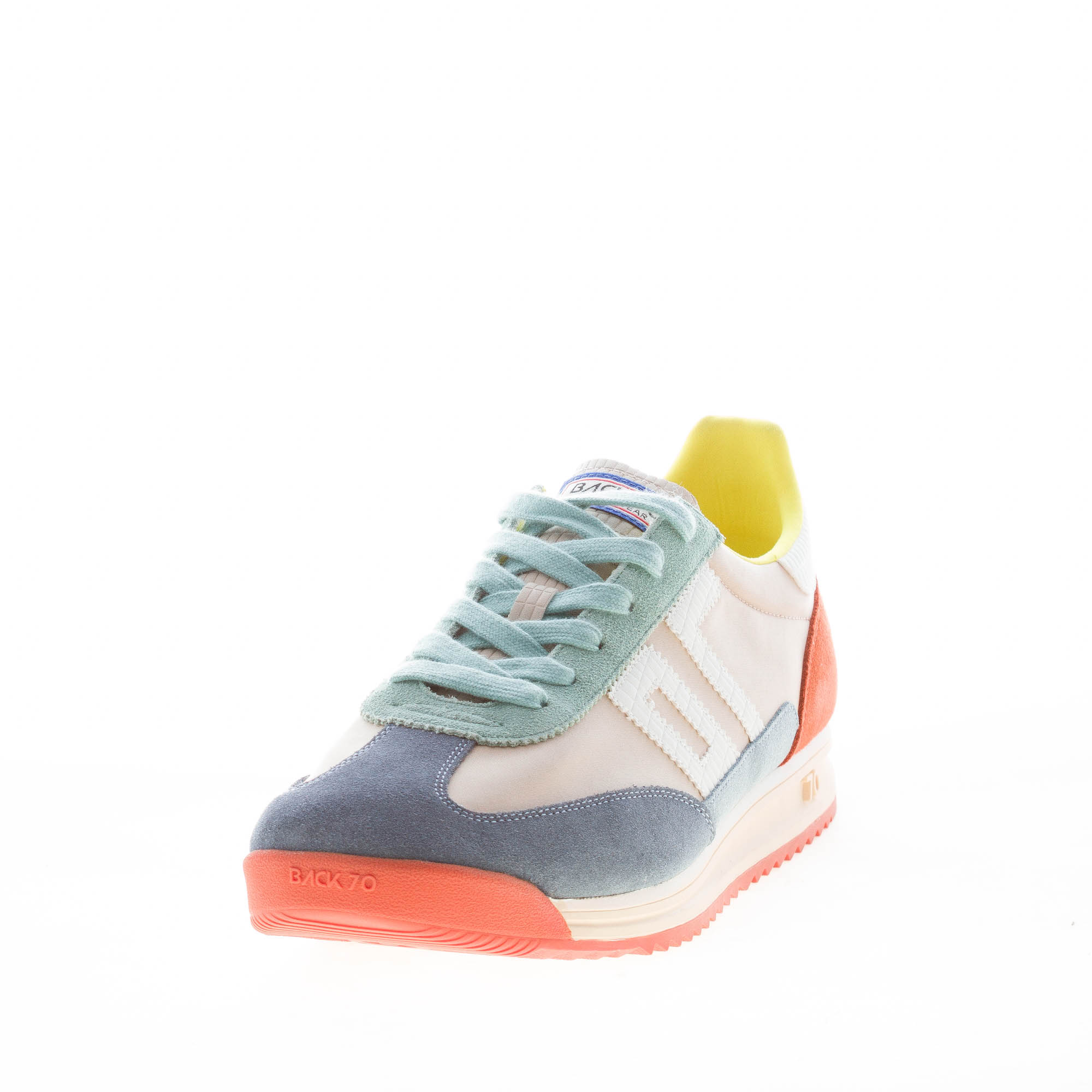 Barkley Jogger sneaker made in multicolor nylon fabric and suede with tones of denim, orange and beige and with a white croco printed leather logo 70 at side and back detail. Tonal laces and removable 1,5 cm footbed. Rubber sole with 3,5 cm heel height