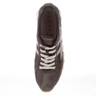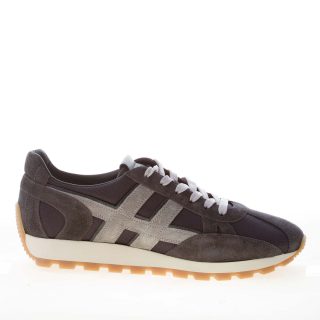 Sneaker H671 della linea 86er realizzata in pelle scamosciata e tessuto tecnico blu con dettaglio H a lato in camoscio grigio e forma allungata. Linea tributo all’anno di nascita del brand. Fussbett interno removibile di circa 0,5 cm. Suola in gomma dentellata con rinforzo al tallone e altezza al tacco di circa 4 cm
