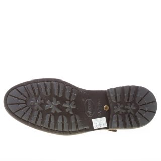 Scarpa con doppia fibbia in camoscio marrone con cucitura cap-toe sulla punta. Fibbie in metallo argento regolabili. Suola Vibram in gomma