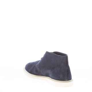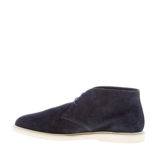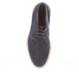 H616 style blue suede Hogan desert boot with a plain toe. Exposed stitchings. Hogan label stitched at side. Linen lining. Internal linen covered memory foam footbed. Lightweight EVA sole