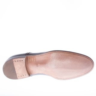 Scarpa derby in pelle testa di moro con puntale forato. Suola in cuoio