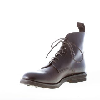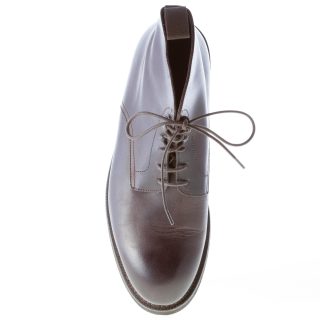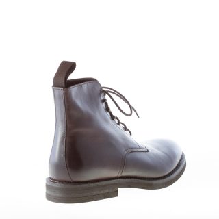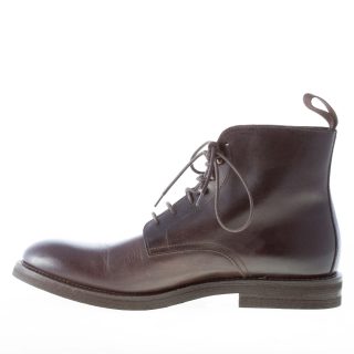 Dark brown leather plain toe laced ankle boot. Rubber sole