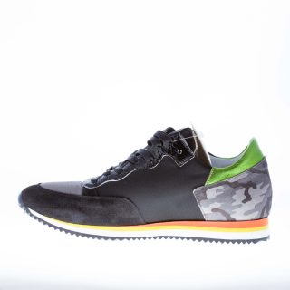 Sneakers in camoscio più tessuto nero con inserto posteriore in camoscio mimetico