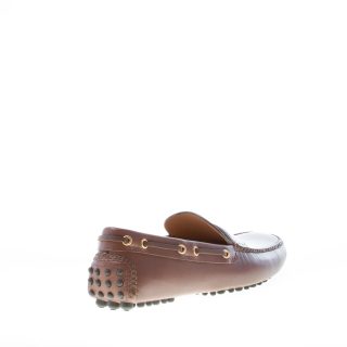 “Cocco” brown leather driving mocassin with a front bar and logo print. Exposed stitching and tubolar construction. Gold-tone metal eyelets. Rubber studded sole