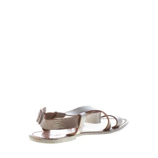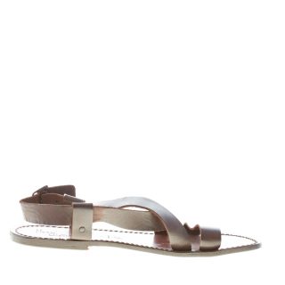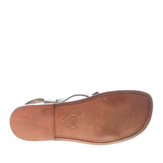 Sandalo realizzato artigianalmente in pelle testa di moro ad effetto vintage con fascia incrociata sul collo e fascia sul piede.   Chiusura con fibbia regolabile. Suola in cuoio effetto usato