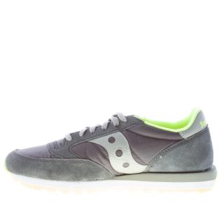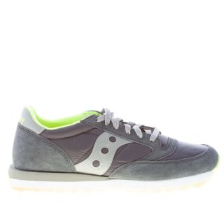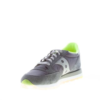 Sneaker uomo Jazz Original in tessuto nylon e camoscio grigio con dettagli giallo flu. Stampa brand sul tallone e sulla