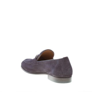 FABRIZIO SILENZI uomo mocassino artigianale in camoscio BLU con morsetto. Suola in cuoio