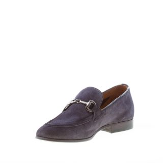 Blue navy suede loafer with a classic metal horsebit. Italian craftsmanship production. Leather sole