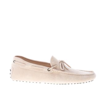 Mocassino driver in camoscio naturale con laccetto passante. Cuciture in rilievo. Monogramma Tod’s impresso. Iconica suola con gommini