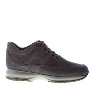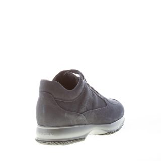 Hogan Interactive grey nubuck sneaker. Stitched padded Hogan monogram on sides. Removable internal footbed 2 cm. Rubber sole