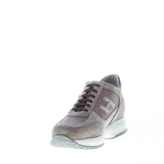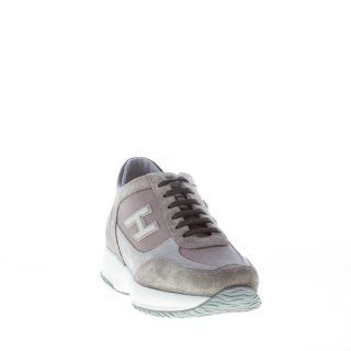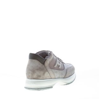 Interactive grey suede and canvas sneaker with a black leather detail at back. Stitched Hogan monogram on sides. Removable internal footbed 2 cm. Rubber sole
