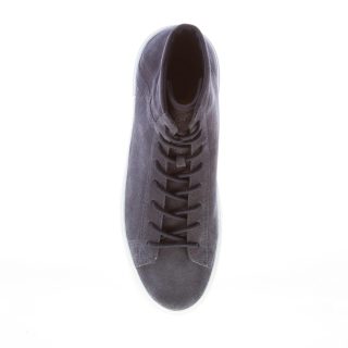 Blue suede Rebel H526 Hi-Top sneaker. Hogan monogram stitched at sides. Exposed stitchings. Internal removable Memory Foam footbed. White rubber sole with approximately 3 cm height