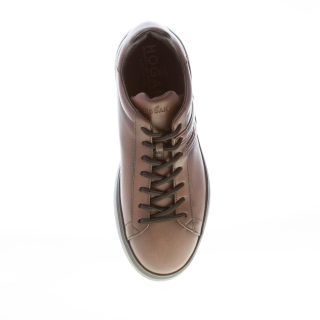 Hogan H580 sneaker crafted in a soft mahogany brown leather with a stitched enlongated Hogan monogram on side. Black rubber branded spoiler at the heel. Internal memory foam footbed 0,8 cm. Rubber sole with 4,5 cm height.