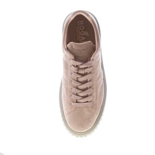 Hogan H645 H-STRIPES sneaker made in soft dove brown suede. Padded Hogan monogram at sides made in an enlongated shape. Stitchings detailing. Internal memory foam footbed 0,8 cm. Extralight EVA sole with vertical lines and a 4,8 cm height