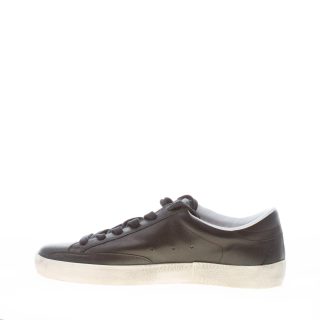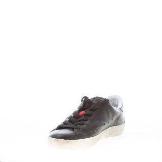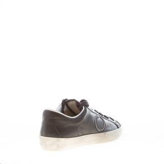 Black leather Low 2406 sneaker with grey suede new Okinawa logo stitched at side. Made in Italy. Colored brand logo stitched at tongue. Used effect rubber sole