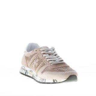 Sneaker Premiata Eric 5666 realizzate in camoscio traforato beige tortora. Iconico logo in rilievo ai lati. Talloncino posteriore in pelle bianca. Plantarino estraibile interno di 1 cm. Suola in gomma