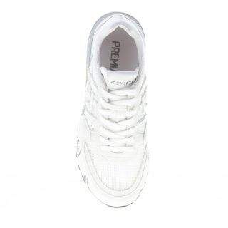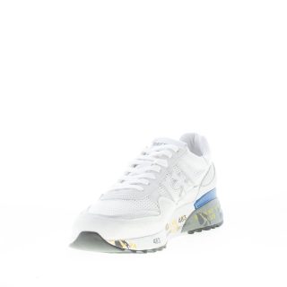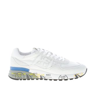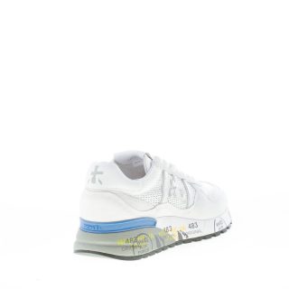Sneaker Landeck 6213 realizzata in camoscio e tessuto tecnico a rete bianco. Talloncino con logo in pelle bianca. Spoiler in gomma azzurra al tallone con il brand. Ai lati l’iconico logo in rilievo in pelle bianca. Suola in gomma con le tipiche stampe graffiti del brand