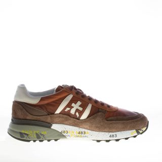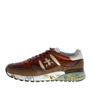 Landeck 6405 sneaker made in brown suede and burnst brown tech fabric. White leather detail at back. Iconic brand logo at sides. Rubber branded spoiler at the heel. Rubber sole with the typical graffiti prints of the brand