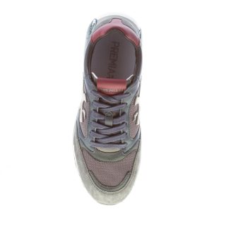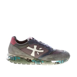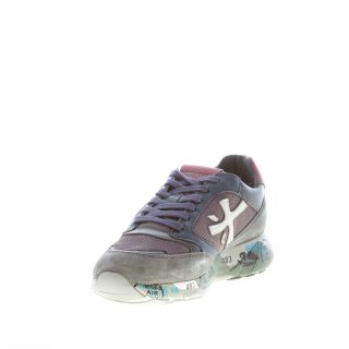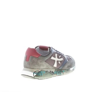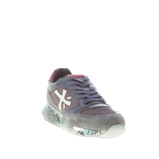 Grey suede and tech fabric Zac-Zac 4070 sneaker with multicolor details in the tones of blue and bordeaux. Iconic embossed brand logo at sides. Rubber sole with the typical graffiti prints of the brand