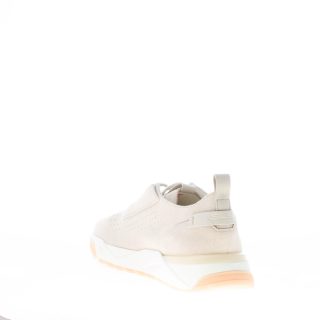 Innova sneaker made in soft and fine beige suede with perforations detail throughout the upper, branded label stitched at back and pull-up. Removable internal footbed. Technical lightweight Eva and rubber sole