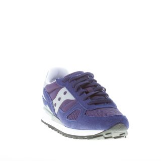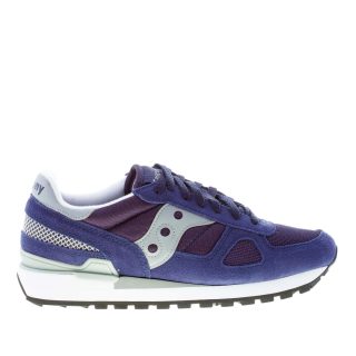 Blue tech fabric and suede Shadow Original sneaker with dark grey leather details. Logo print at tongue and heel. Grey rubber heel counter. Two-tones rubber sole