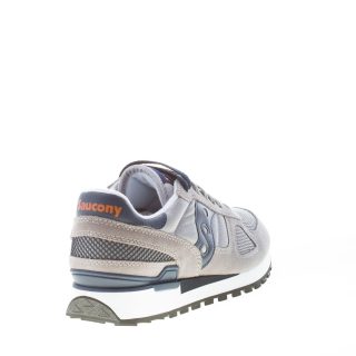 Sneaker uomo Shadow Original in tessuto e camoscio grigio con dettagli in pelle blu scuro. Stampa brand sul tallone e sulla linguetta. Rinforzo in gomma blu al tallone. Suola in gomma bicolore