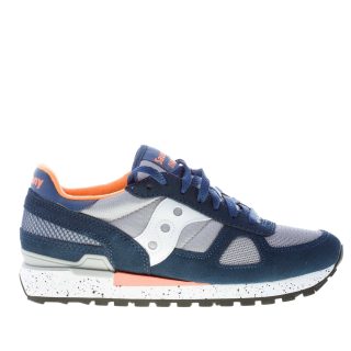Sneaker uomo Shadow Original in tessuto tecnico e camoscio blu e grigio con dettagli in pelle bianca e rifiniture arancioni. Stampa brand sul tallone e sulla linguetta. Rinforzo in gomma al tallone. Suola in gomma leggera con effetto inchiostro
