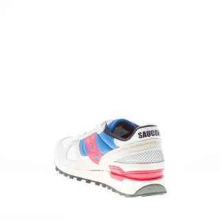 Sneaker uomo Shadow Original Vintage in tessuto tecnico e camoscio grigio più navy e dettagli in pelle rossa e bianca.