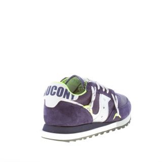 Blue navy tech mesh fabric and suede new Jazz DST sneaker with silver and white leather details. Logo print at tongue and heel. New and original adaptable lacing system. Lightweight multicolor rubber sole