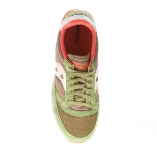 Green tech fabric and suede Jazz 81 sneaker with golden and orange details. Logo print at tongue and heel. Original tongue badging from 1981. Upgraded full-cushion sockliner. Lightweight multicolor rubber sole