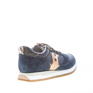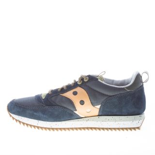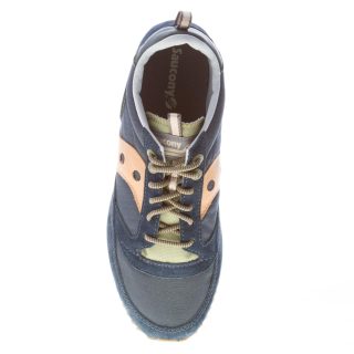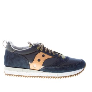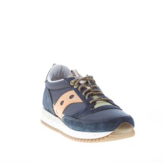 Sneaker Jazz 81 Peak in tessuto nylon a retina e camoscio blu con dettagli in tessuto verde militare e rifiniture arancioni. Stampa brand sul tallone e sulla linguetta. Linguetta originale del 1981. Nuovo sottopiede completamente ammortizzato. Suola in gomma leggera multicolore.