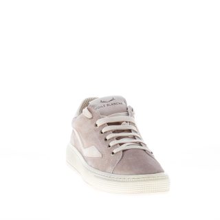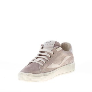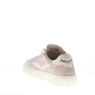 Dove dyed suede Fit Easy sneaker with grey leather branded inserts at tongue and heel. Internal removable footbed. Rubber sole with piping