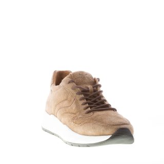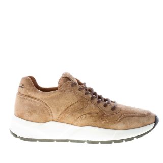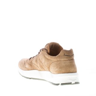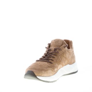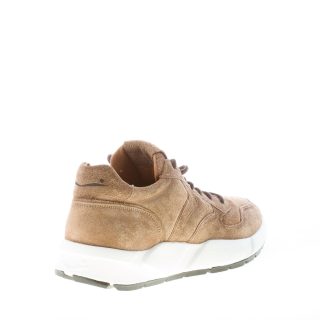 Beige taupe hairy suede Arpolh Easy sneaker with contrasting brown laces. White rubber sole