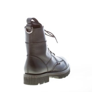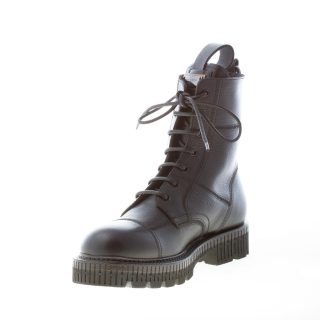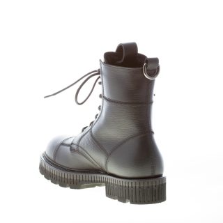 Stivaletto anfibio Bernini realizzato in morbida pelle di vitello palmellata con allacciatura frontale. Placca di metallo con logo sulla linguetta. Passante posteriore con anello in metallo. Suola in gomma