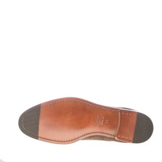 Moka brown fine suede leather completely made in Italy chelsea boot with a plain almond toe. Elastic fabric bands on both sides. Blake construction. Multilayer leather sole with antislipper rubber insert