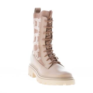 TOD’S donna anfibio stringato Kate in pelle e maglia BEIGE SCURO con motivo a catena