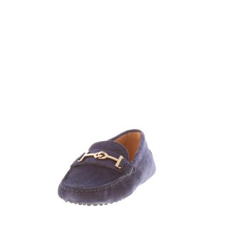 TOD’S donna mocassino Gommino in camoscio BLU GALASSIA con accessorio T-Ring oro. Suola gommini