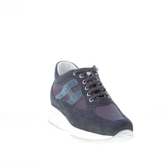 HOGAN donna Interactive in camoscio più tessuto BLU NOTTE con H di strass