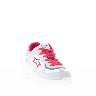 VOILE BLANCHE donna sneaker MAY POWER in pelle ARGENTO e nylon BIANCO con suola rialzata
