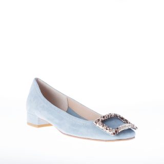 IL BORGO FIRENZE décolleté in camoscio BLU AVIO con fibbia stampa pitone. Tacco 2 cm