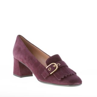 IL BORGO FIRENZE donna decolletè in camoscio PRUGNA con frangia e fibbia. Tacco 5 cm