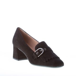 IL BORGO FIRENZE donna decolletè in camoscio NERO con frangia e fibbia. Tacco 5 cm