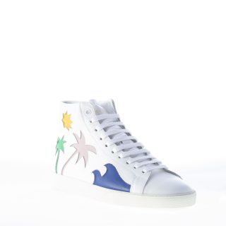 SAINT LAURENT uomo sneaker in pelle BIANCO con dettaglio palme colorate